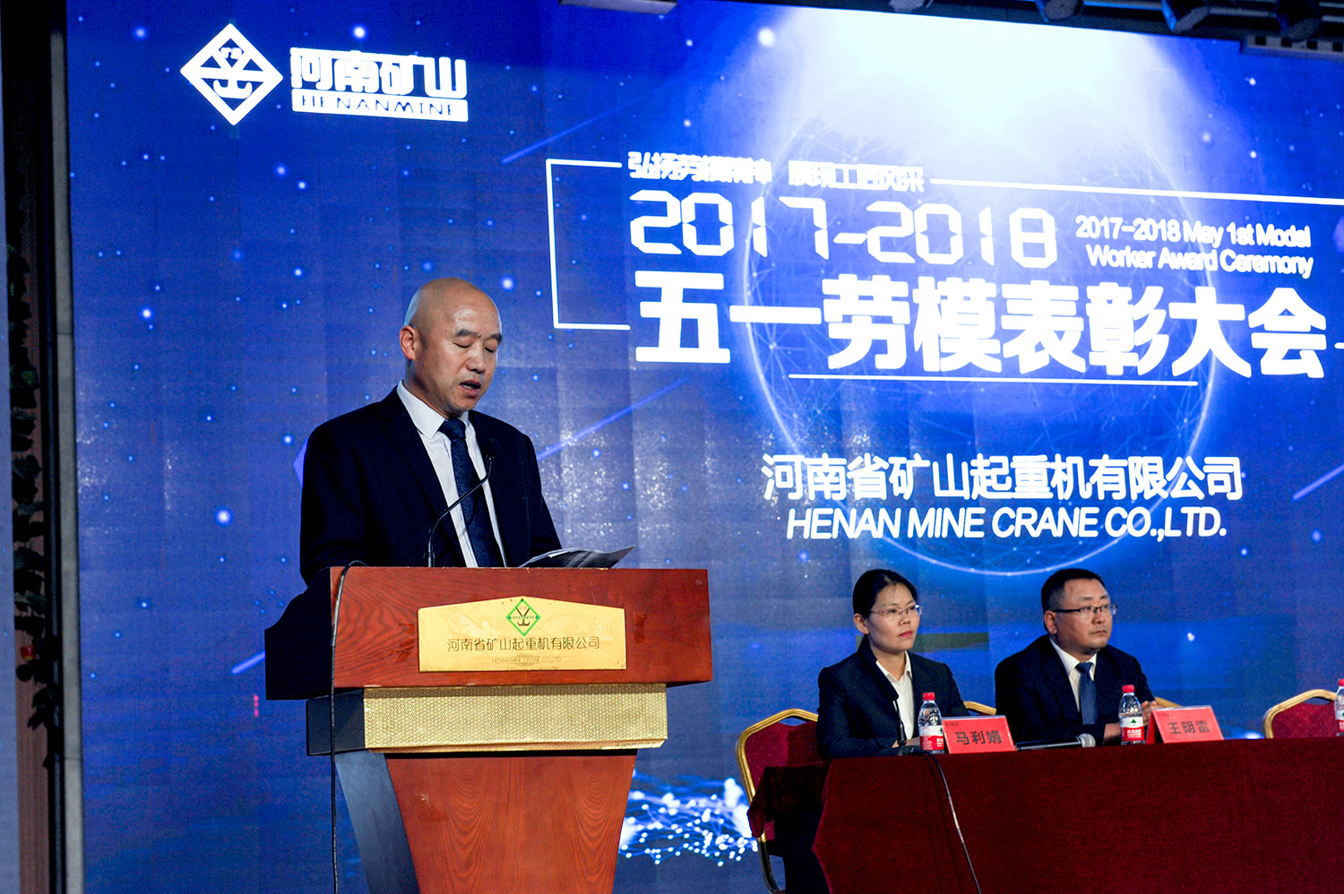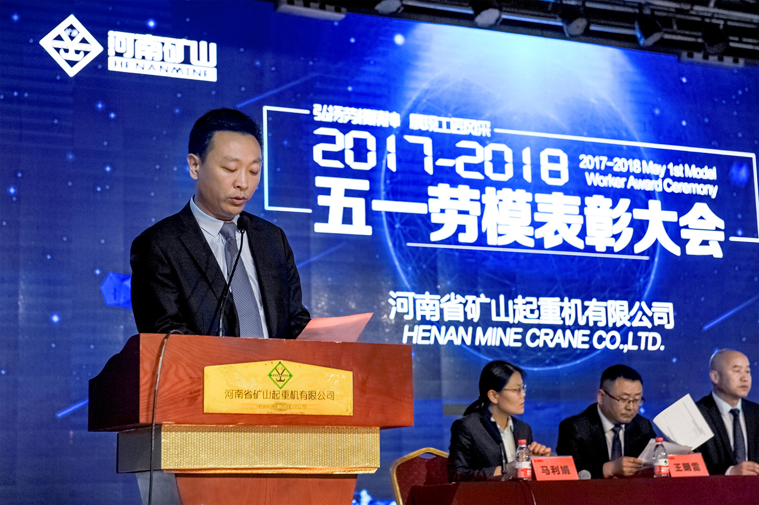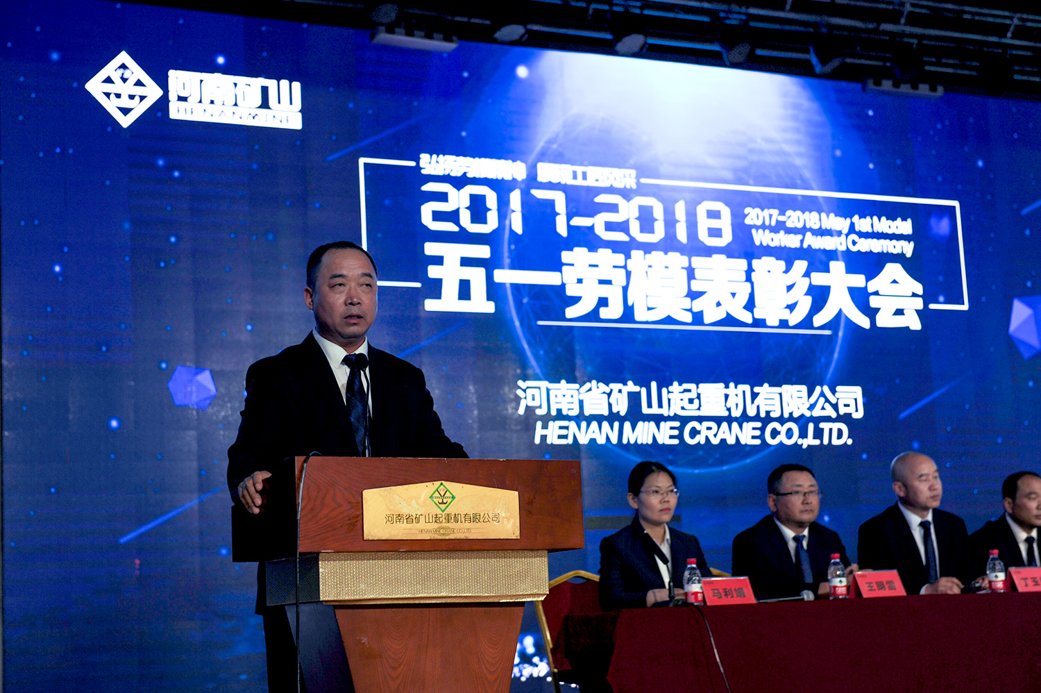 公司創(chuàng)始人、黨委書記崔培軍發(fā)表重要講話。他首先向全體員工致以節(jié)日的問候,向獲獎(jiǎng)勞模表示祝賀!感謝大家為公司所做出的努力與貢獻(xiàn)。他就勞模精神、工匠精神、質(zhì)量比武、生產(chǎn)工期、素質(zhì)素養(yǎng)五個(gè)方面提出希望和要求。希望在勞模精神的鼓舞下,全體員工要抓緊生產(chǎn),服務(wù)客戶。繼續(xù)深化質(zhì)量月活動(dòng)。立足本職崗位,再創(chuàng)新的佳績(jī)。踐行工匠精神,以更高標(biāo)準(zhǔn)嚴(yán)格要求自己。團(tuán)結(jié)一心,眾志成城,努力將河南礦山打造成為一個(gè)享有盛譽(yù)、具有活力、追求卓越的**起重企業(yè)。