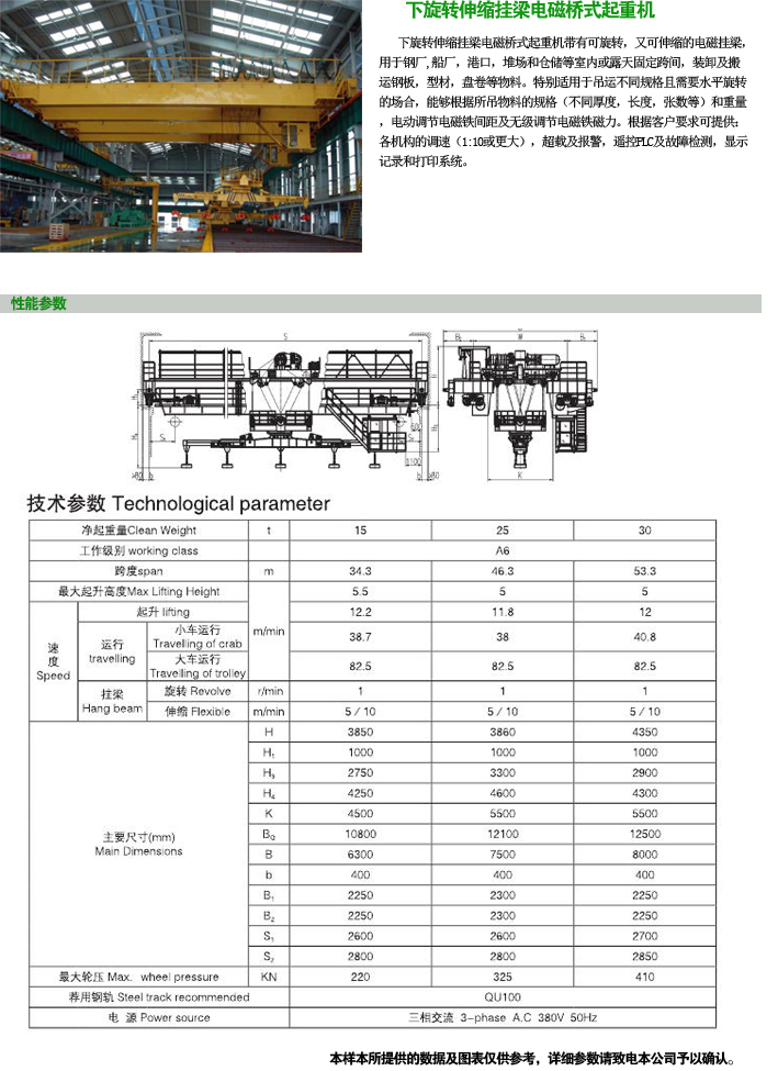 下旋轉(zhuǎn)伸縮掛梁電磁橋式起重機(jī) · 產(chǎn)品介紹