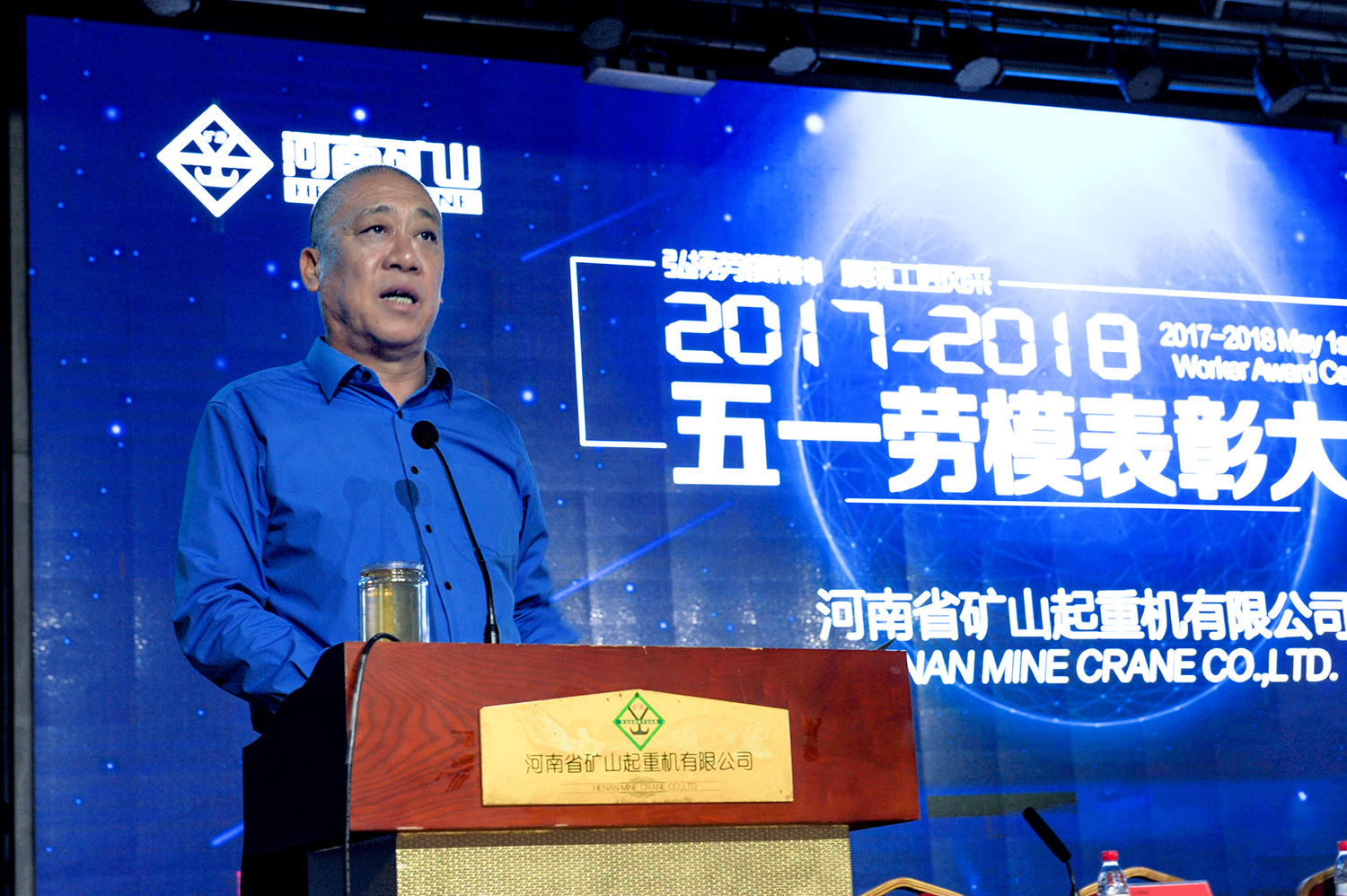 公司創(chuàng)始人、黨委書記崔培軍發(fā)表重要講話。他首先向全體員工致以節(jié)日的問候,向獲獎(jiǎng)勞模表示祝賀!感謝大家為公司所做出的努力與貢獻(xiàn)。他就勞模精神、工匠精神、質(zhì)量比武、生產(chǎn)工期、素質(zhì)素養(yǎng)五個(gè)方面提出希望和要求。希望在勞模精神的鼓舞下,全體員工要抓緊生產(chǎn),服務(wù)客戶。繼續(xù)深化質(zhì)量月活動(dòng)。立足本職崗位,再創(chuàng)新的佳績(jī)。踐行工匠精神,以更高標(biāo)準(zhǔn)嚴(yán)格要求自己。團(tuán)結(jié)一心,眾志成城,努力將河南礦山打造成為一個(gè)享有盛譽(yù)、具有活力、追求卓越的**起重企業(yè)。
