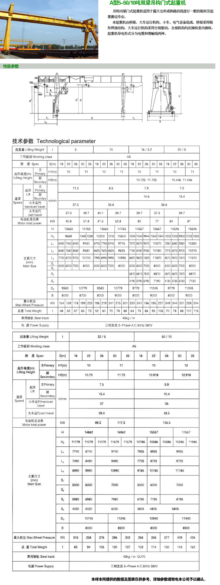 A型5-50/10噸雙梁吊鉤門式起重機(jī) · 產(chǎn)品介紹